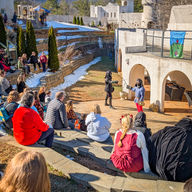 Enjoy the Meadow Village performances and vendors, then take a shuttle to the upper level and enjoy the courtyard performers, vendors, and Uhuburg's castle grounds.
